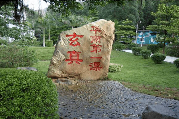 差不多接近四個小時左右我們到達的清遠(yuǎn)市清新縣,下了車,來到了一家清新縣的飯店吃午餐,盡管味道不是太適合我們的口味,但也體驗了清遠(yuǎn)人別樣的風(fēng)味,加上大家已經(jīng)坐了好久的車,已經(jīng)有點餓了,因此大家還是吃得很暢酣。茶余飯后,大概休息了10分鐘之后。導(dǎo)游說,開始上車了,帶我們?nèi)バ嫫?,說到這個,我們的心情立馬激動起來,顧不得滿嘴還是油也沒檫干凈,就都飛奔去上車了。過了大概20分鐘,終于抵達清遠(yuǎn)玄真漂流的起點——玄真漂流站。眼前的那一塊書寫著“玄真 華南第一漂”的石頭最為顯眼。