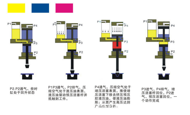 低壓提高十倍供應(yīng)油壓缸使用,從而達(dá)到成型的目的。